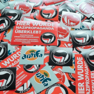 Zum Verkauf stehen politisch linke Sticker, perfekt für den Innen- und Außenbereich geeignet. Produktbeschreibung Beim Kauf erhalten sie 100 der abgebildeten Aufkleber. Die Aufkleber besitzen eine Schicht die vor Ausbleichung und Regen schützt und kommen mit Knicken/ Schlitzungen zur leichten und schnellen Anbringung.