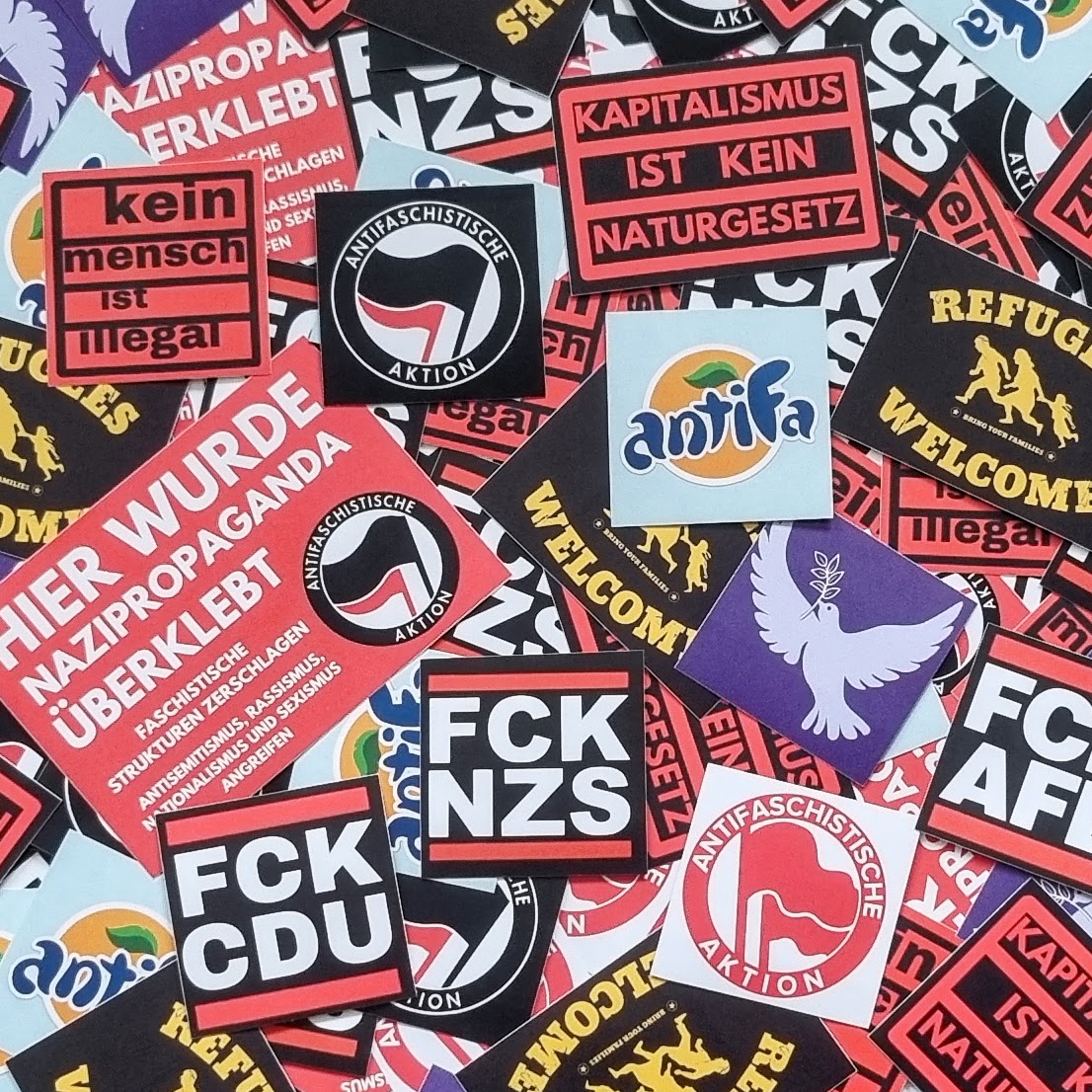 100x Zufällige Sticker + FCK NZS/ AFD Chip – 161 Stickerbombe – Antifa Aufkleber