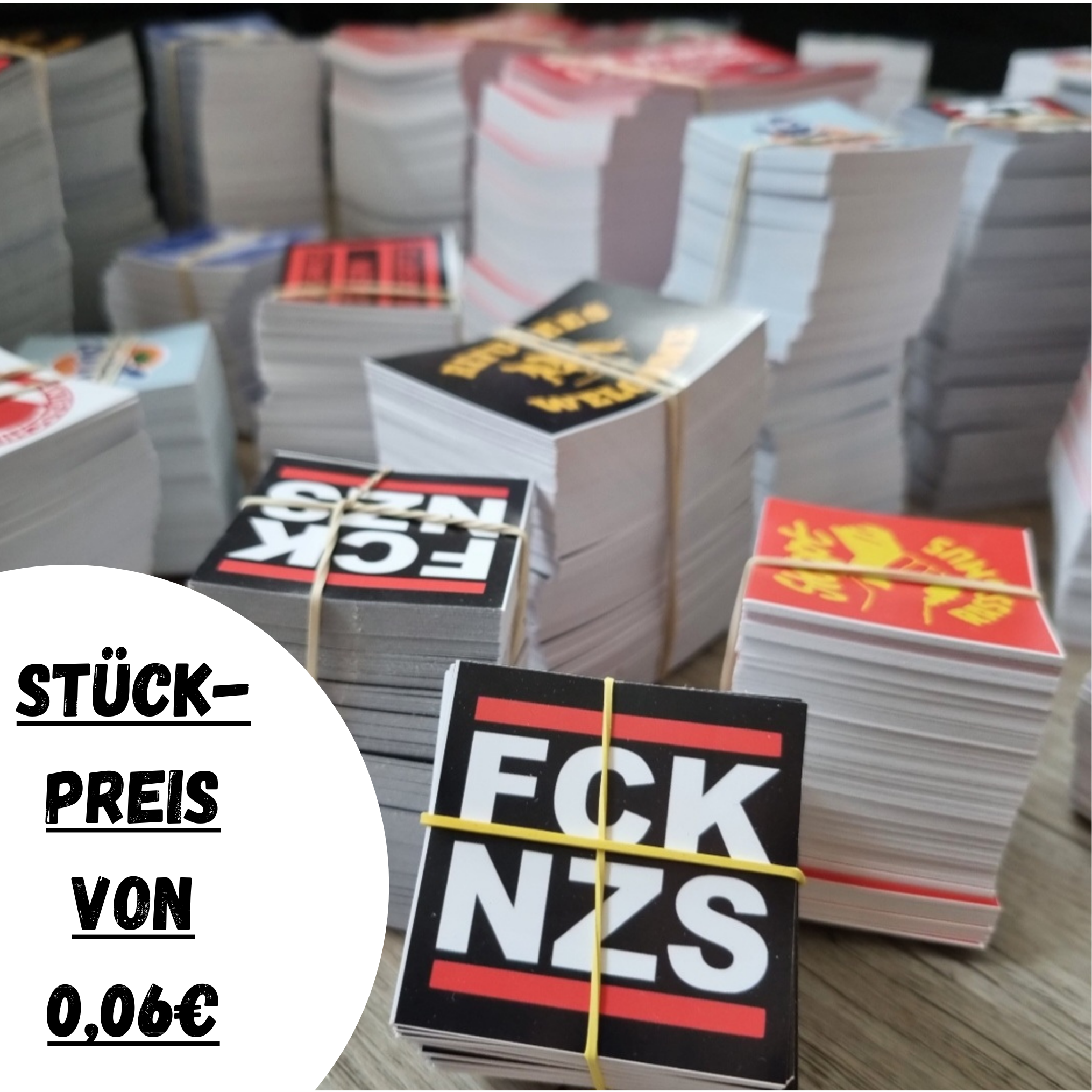2.500x Zufällige Sticker – Stickerbombe – Antifa Aufkleber – FCK NZS – Refugees