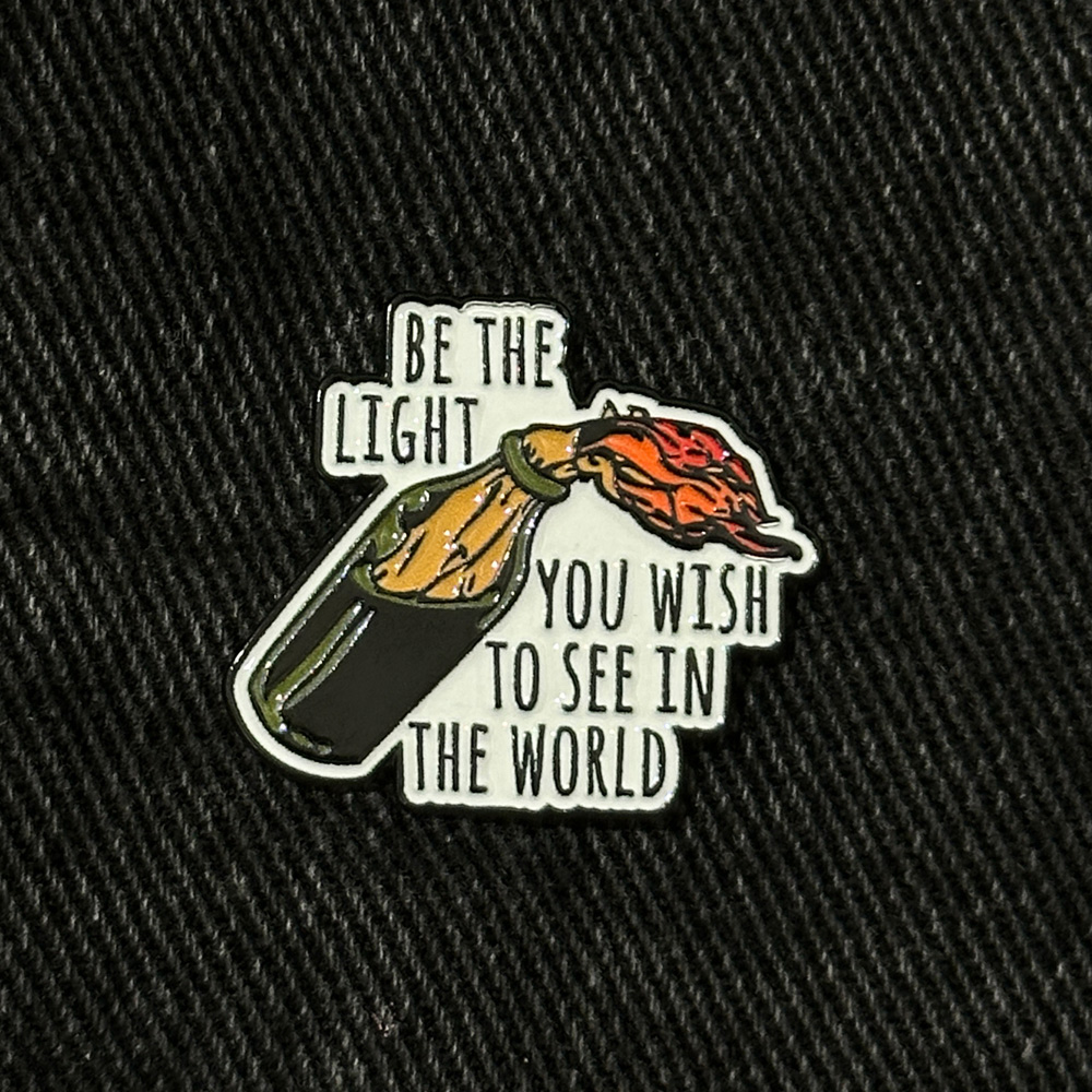 Der „Be The Light You Wish To See In The World“ Emaille Pin kombiniert eine kraftvolle Botschaft mit einem ausdrucksstarken Design – perfekt für alle, die Motivation und Rebellion stilvoll verbinden wollen.