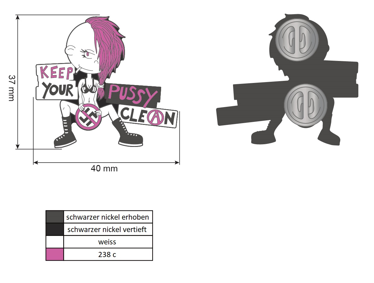 Endlich ist es so weit und das „Keep Your Pussy Clean“ Motiv gibt es nun auch als hochwertigen Metal Pin!