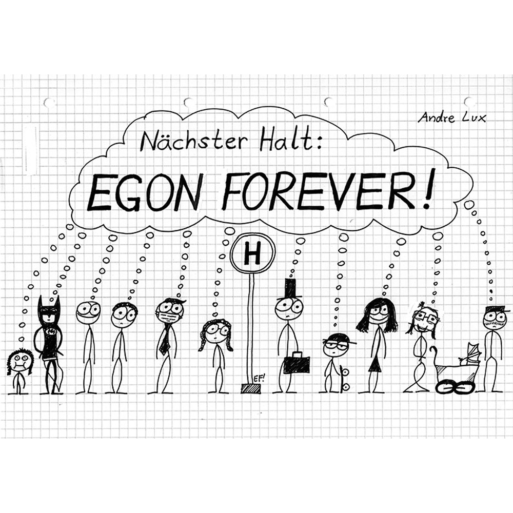 Mit Nächster Halt: EGON FOREVER! bringt Andre Lux seine kultigen Strichfiguren zurück aufs Papier – bissig, klug und herrlich reduziert.