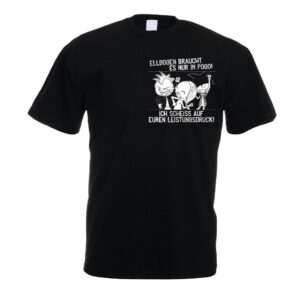 Ein T-Shirt mit den Figuren von Punks’n’Banters mit der Message: “Ellbogen braucht es nur im Pogo! Ich scheiß auf euren